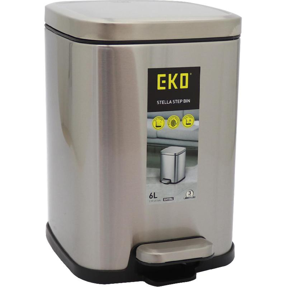ايكو ستيلا سلة مهملات مع غطاء يرفع بالقدم، 6.00 لتر، ستاينلس ستيل/بلاستيك، فضي