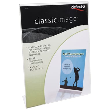 ديفليكتو كلاسيك ايميج حامل لوحات ورقية مائل على شكل حرف L، مقاس ليتر، على الطاولة، اكريليك، شفاف