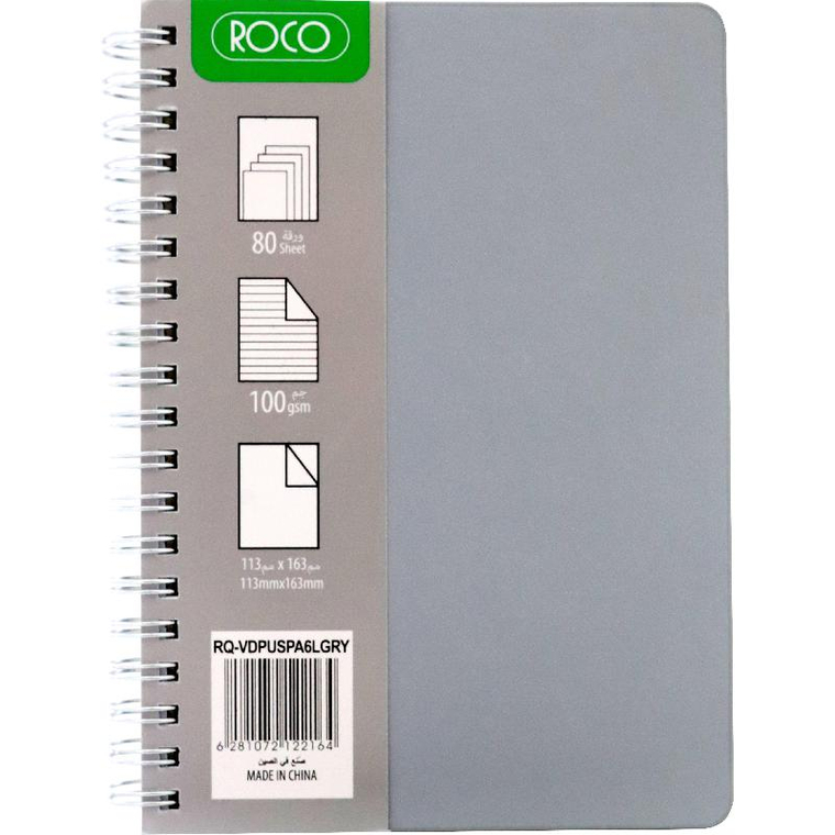 روكو دفتر ملاحظات، جلدي، 11.3 X 16.3 cm، 80 ورقة، مسطر، رمادي فاتح