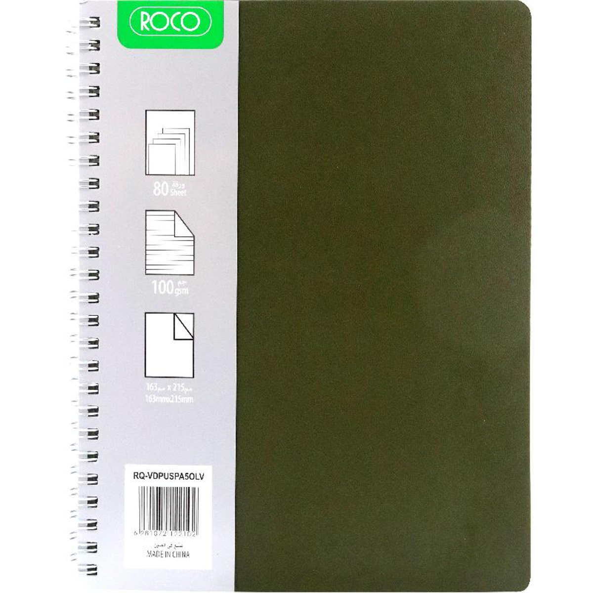 روكو دفتر ملاحظات، جلدي، 16.3 X 21.5 cm، 80 ورقة، مسطر، الزيتون الاخضر