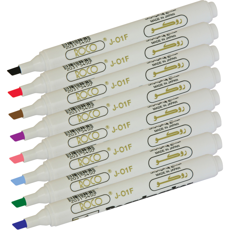 روكو ماركر سبورة بيضاء، 3 مم - 1.5 رأس مشطوف، أسود،أحمر،أزرق،أخضر،بنفسجي،وردي،بني،أزرق سماوي