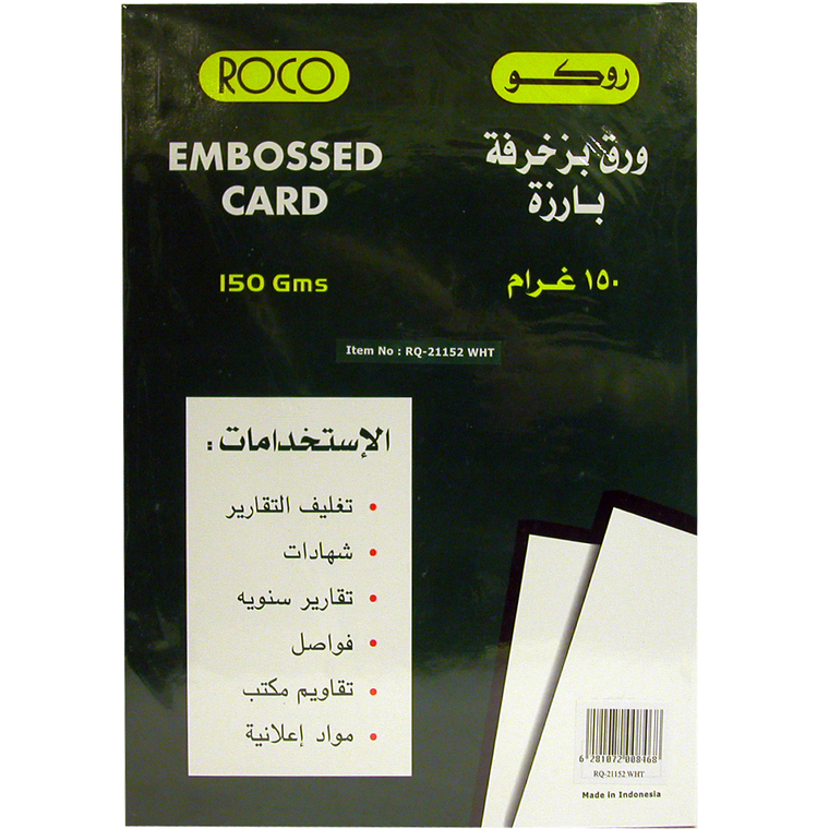 روكو ورق مقوى مزخرف محاط، ابيض، A4، 150 gsm، 50 ورقة