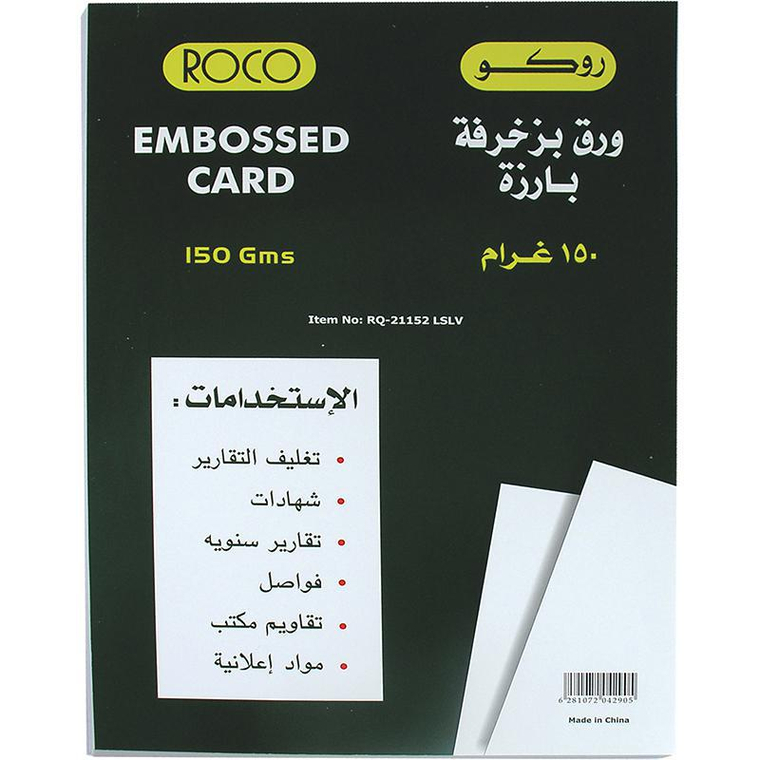 روكو ورق مقوى مزخرف محاط، فضي فاتح، A4، 150 gsm، 50 ورقة