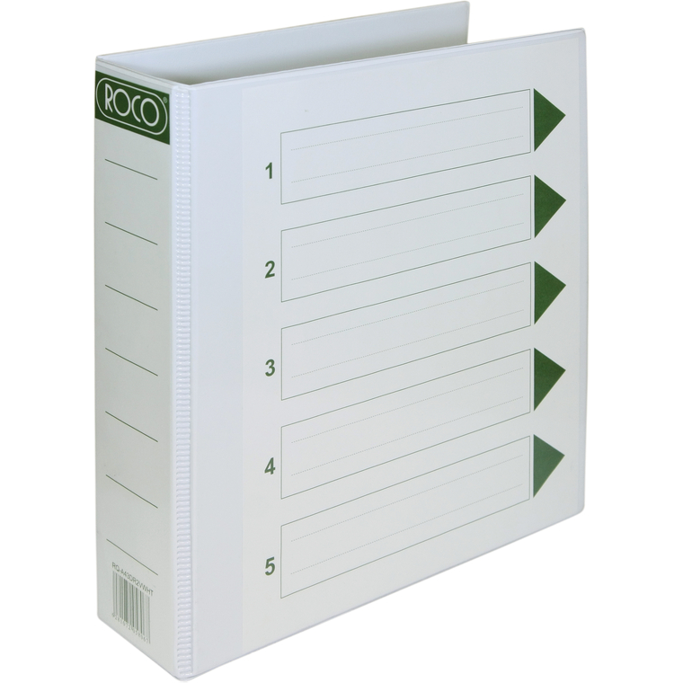 روكو "D" ملف عرض تقديمي 3 حلقات، 2.00 بوصة، A4، كرتون/بلاستيك، ابيض