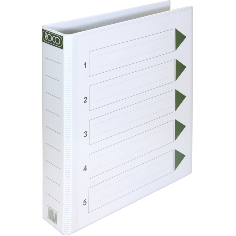 روكو "D" ملف 2 حلقة، 1.50 بوصة، A4، كرتون/بلاستيك، ابيض