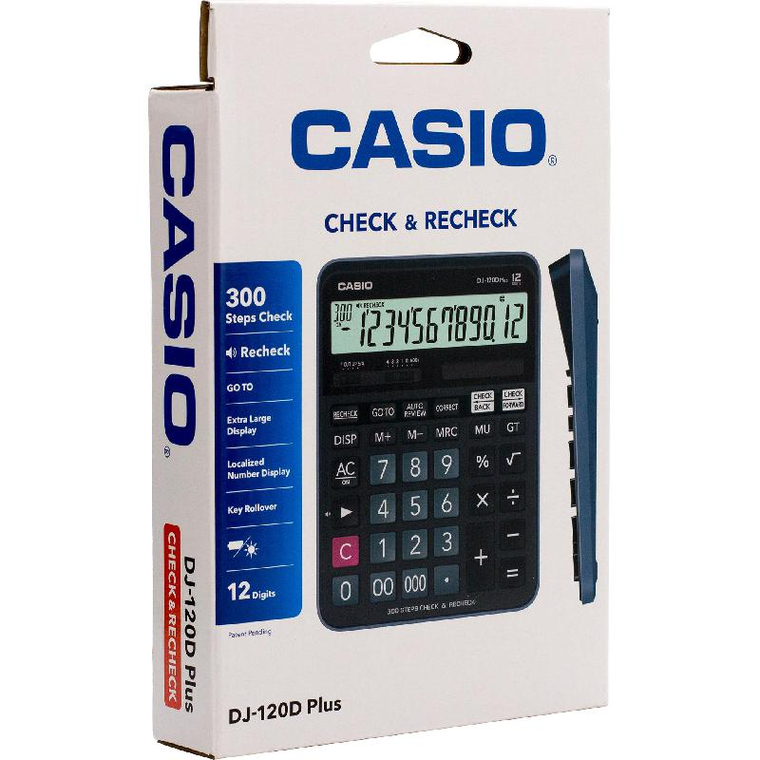 كاسيو بلس DJ-120D آلة حاسبة للمكتب، 12 رقم، شاشة كبيرة، رمادي/أسود