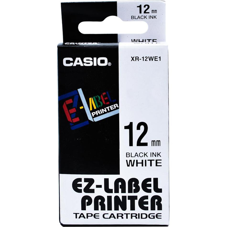 كاسيو XR-12 ليبل-EZ شريط لصق مخصص لماكينات الطباعة، السعة 12 مم، شريط أبيض /حبر أسود