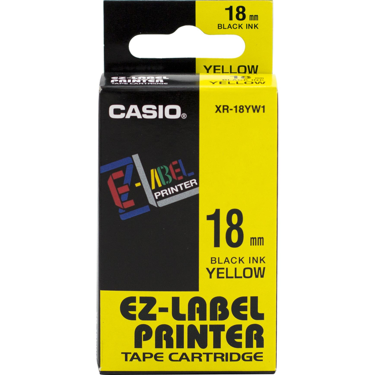 كاسيو XR-18 ليبل-EZ شريط لصق مخصص لماكينات الطباعة، 18 مم، شريط أصفر /حبر أسود