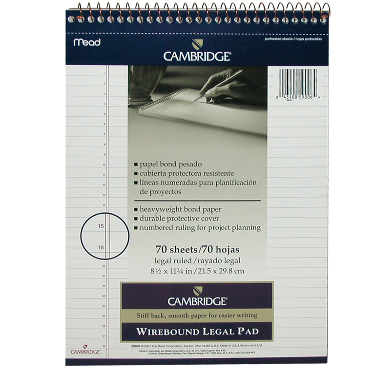 Cambridge Premium Writing Pad, A4, 70 Sheets (140 Pages), Le al Ruled (Numbered), White / EA